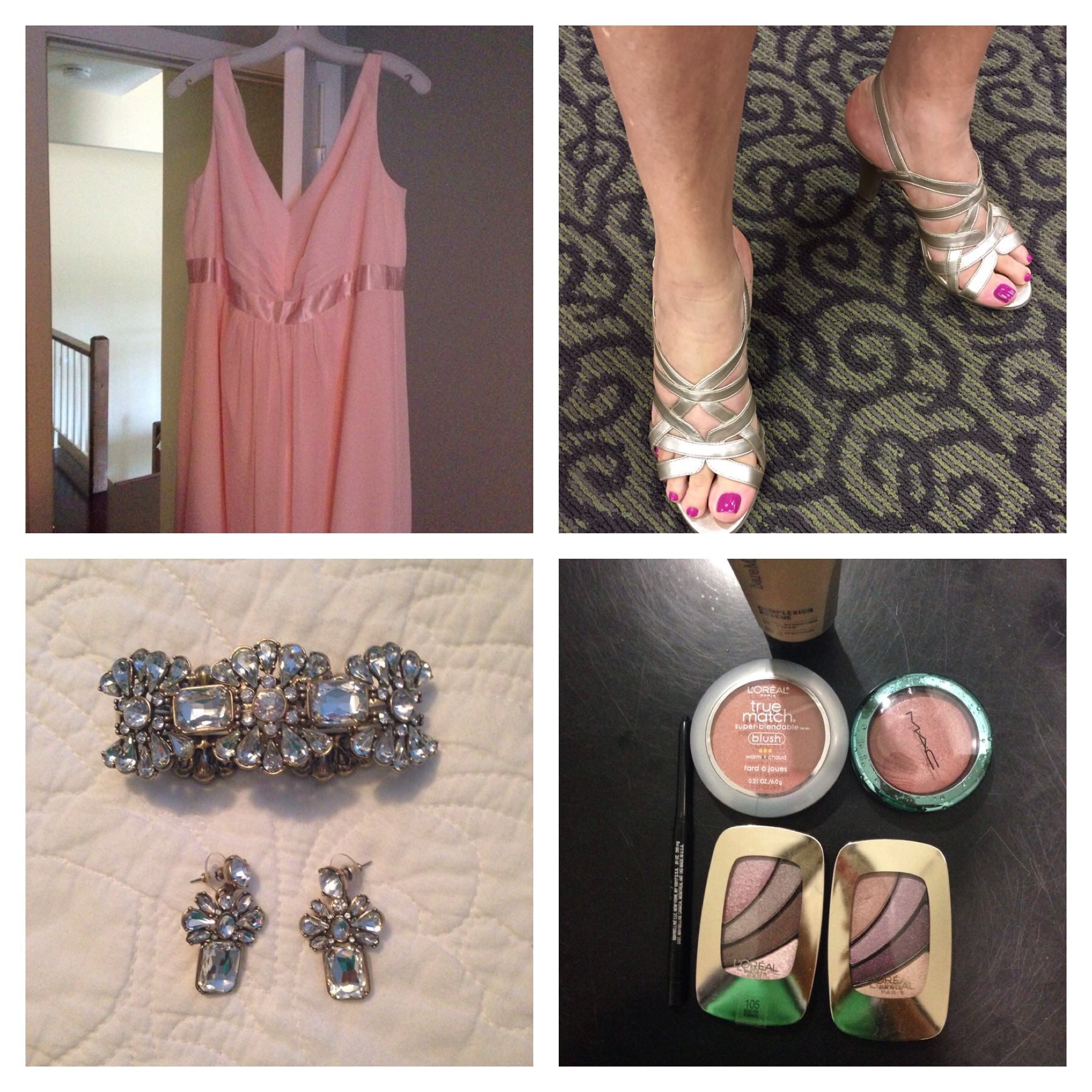 Luzia was wearing a beautiful blush pink gown and was looking to accessorize the dress. I encouraged her to wear the jewelry she wore for her wedding a year earlier. We settled on a pair of earrings and a bracelet. I really encouraged her to keep her look simple. Since she’s a bridesmaid, it’s best that she not overshadow the bride with too many accessories. A few sparkly baubles, a great blowout, simple makeup, and a mani-pedi is all she’ll need to compliment her gown and bouquet.
